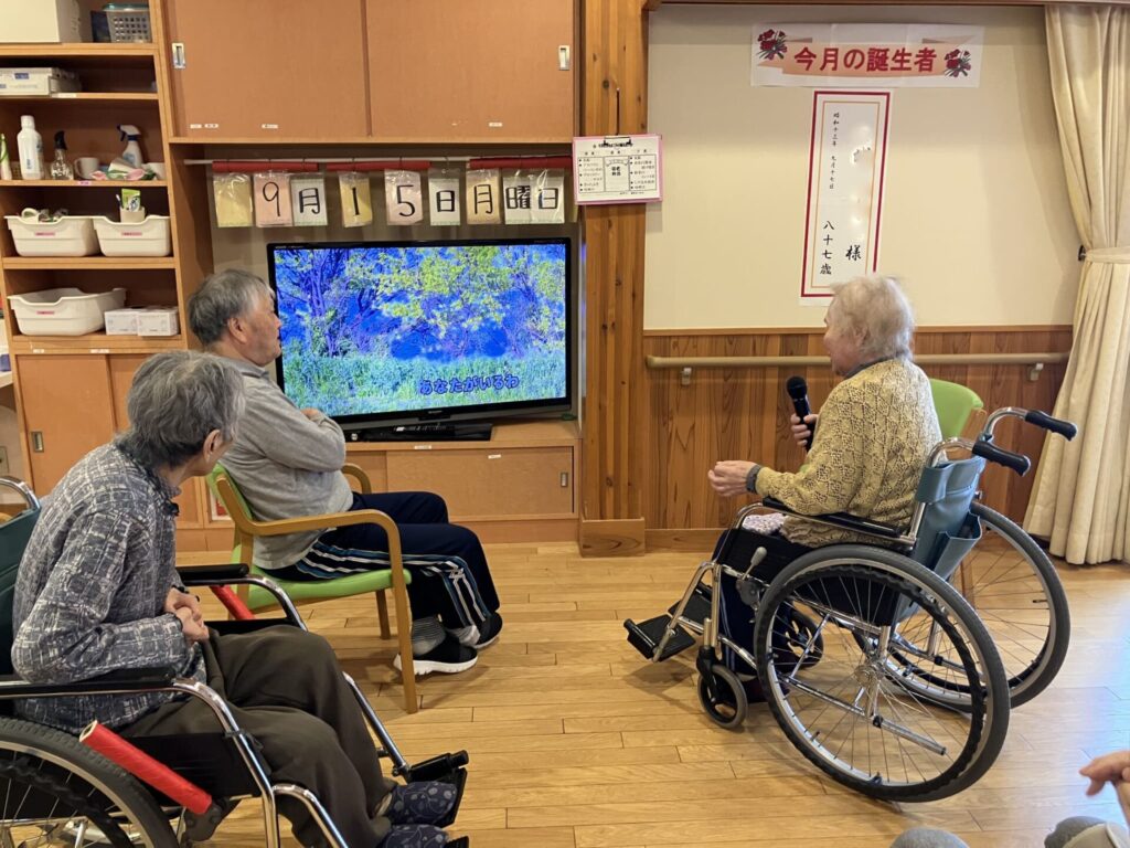 そして締めは皆様大好きなカラオケ大会。ご自慢の美声をたっぷりと披露してくださり、大盛り上がりの敬老会となりました。皆様の健康とご多幸を心よりお祈り申し上げます。