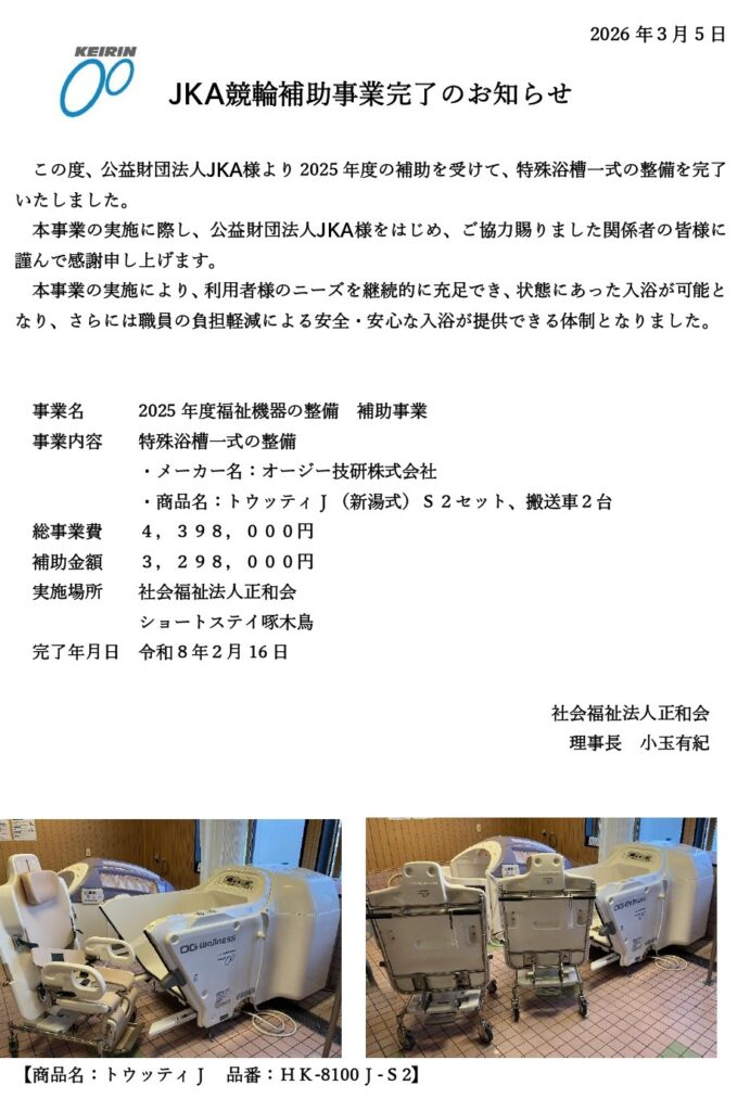 JKA競輪補助事業完了のお知らせ