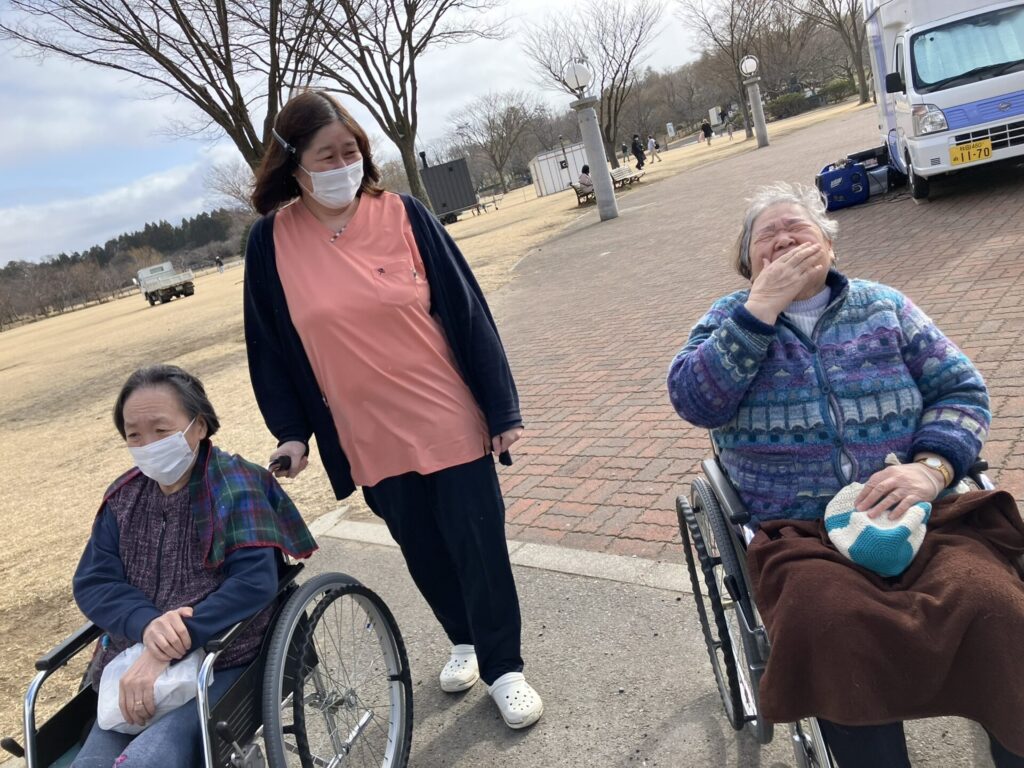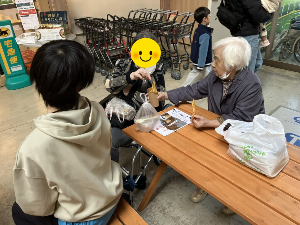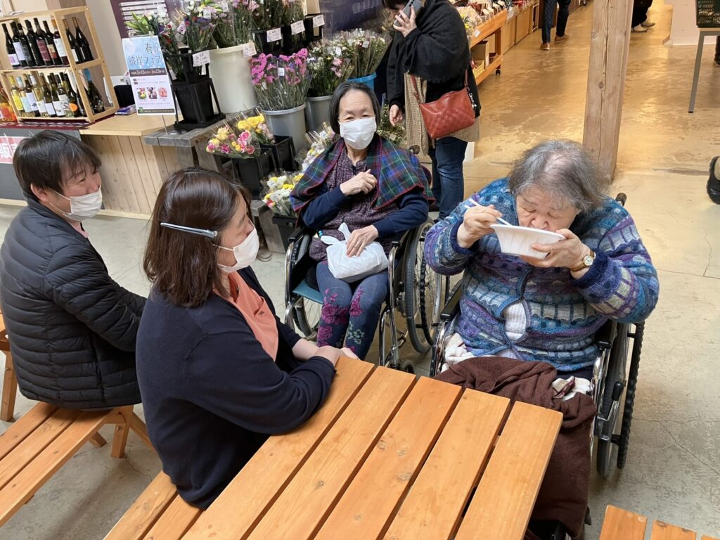 3月14日、道の駅てんのうでキッチンカーのイベントが行われているとのことで、美味しい物に目がない利用者様と一緒に外出してきました。すぐそばに道の駅があるので、思い立ったらすぐ出かけられるのがうれしいところですね。