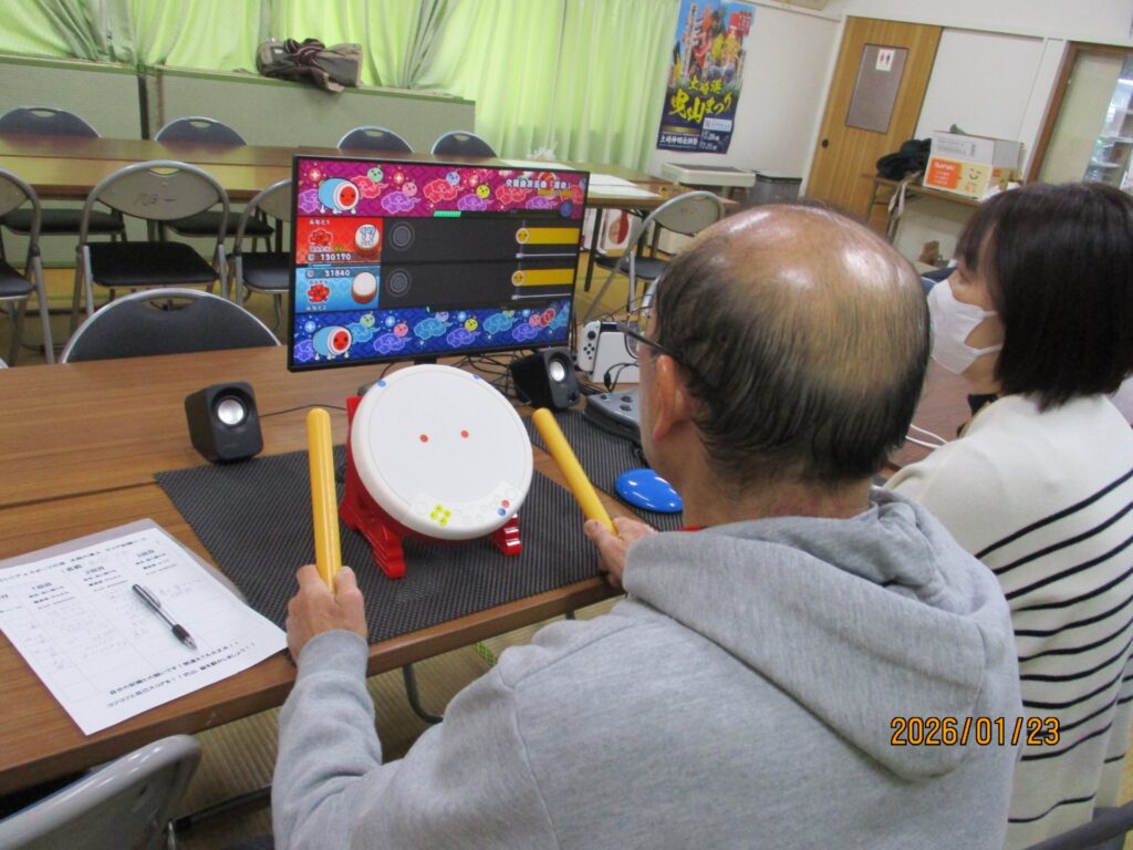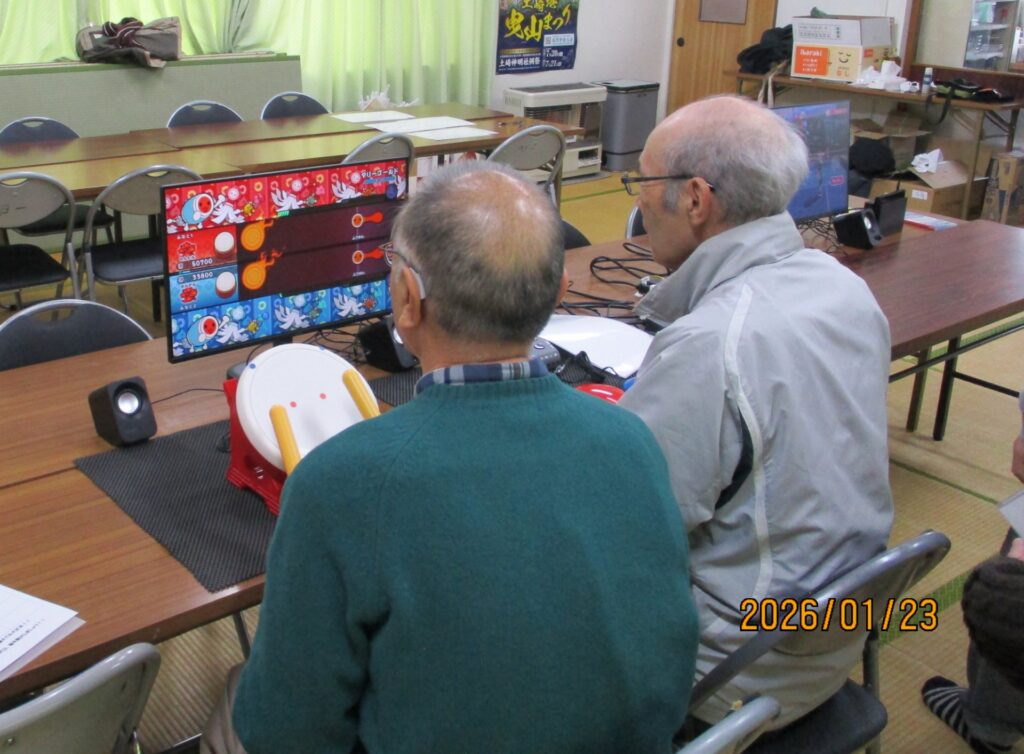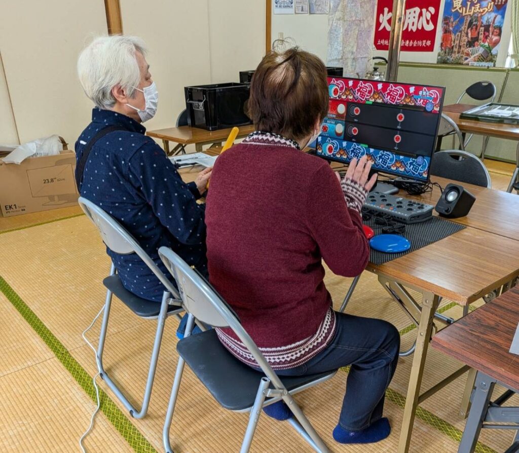 それが今年度、旭町の一区、二区、三区の3町内合同の取り組みとして、新たに『旭町シニアeスポーツの会 いきいき井戸端サロン』を立ち上げ、活動しています。3町内の交流とフレイル予防を目的に、太鼓の達人やバドミントン、ボーリング、レーシングゲームなどのeスポーツを楽しんでいます。男性の参加も多いのがこのサロンの特徴です。自身のスコアの更新や仲間との勝負に、毎回盛り上がっています。