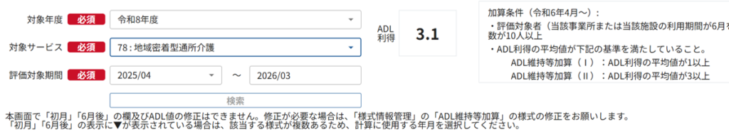 • ADL維持等加算とは、評価期間内のADLの維持や改善の度合いが一定の水準を超えている事業所を評価するもので、利用者の自立支援や重度化防止に繋がるサービスの提供を事業所へ促すインセンティブとして、次年度の介護報酬に上乗せ加算されます。