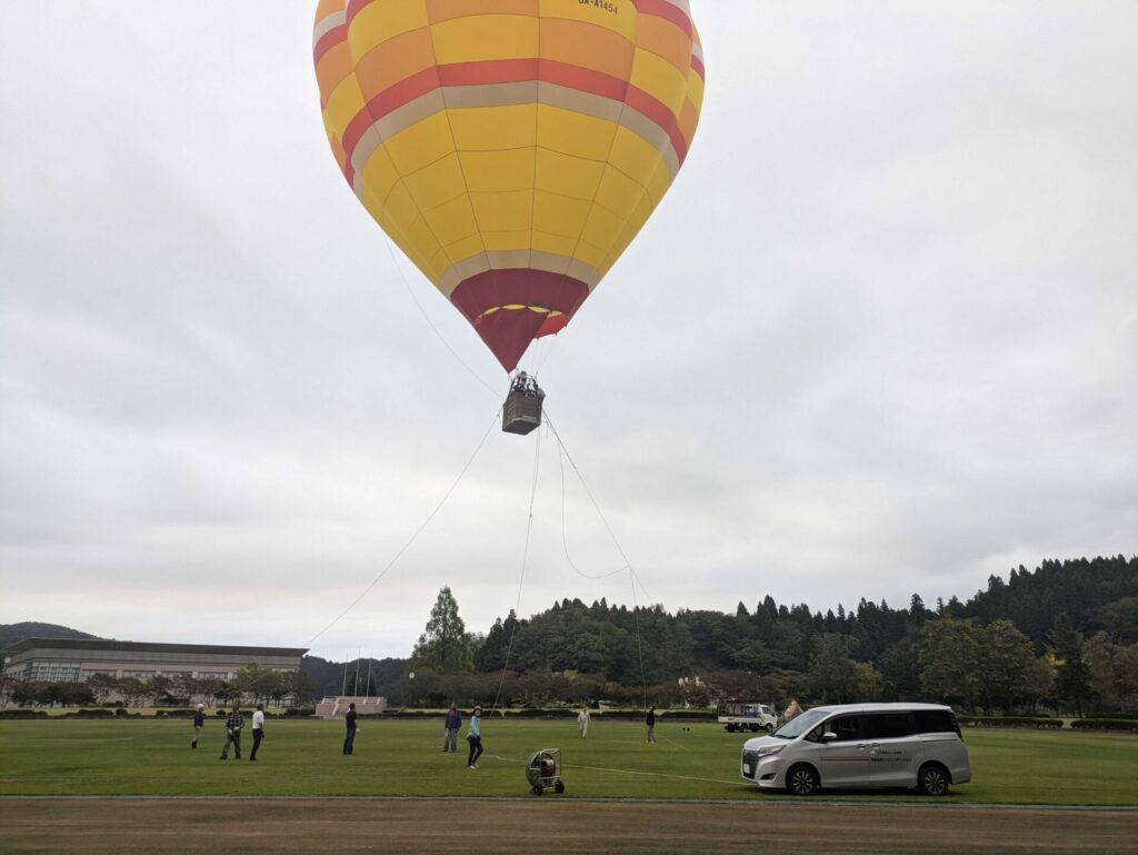 生憎の天気でしたが、何とかメインイベントの気球を飛ばすことができました!!