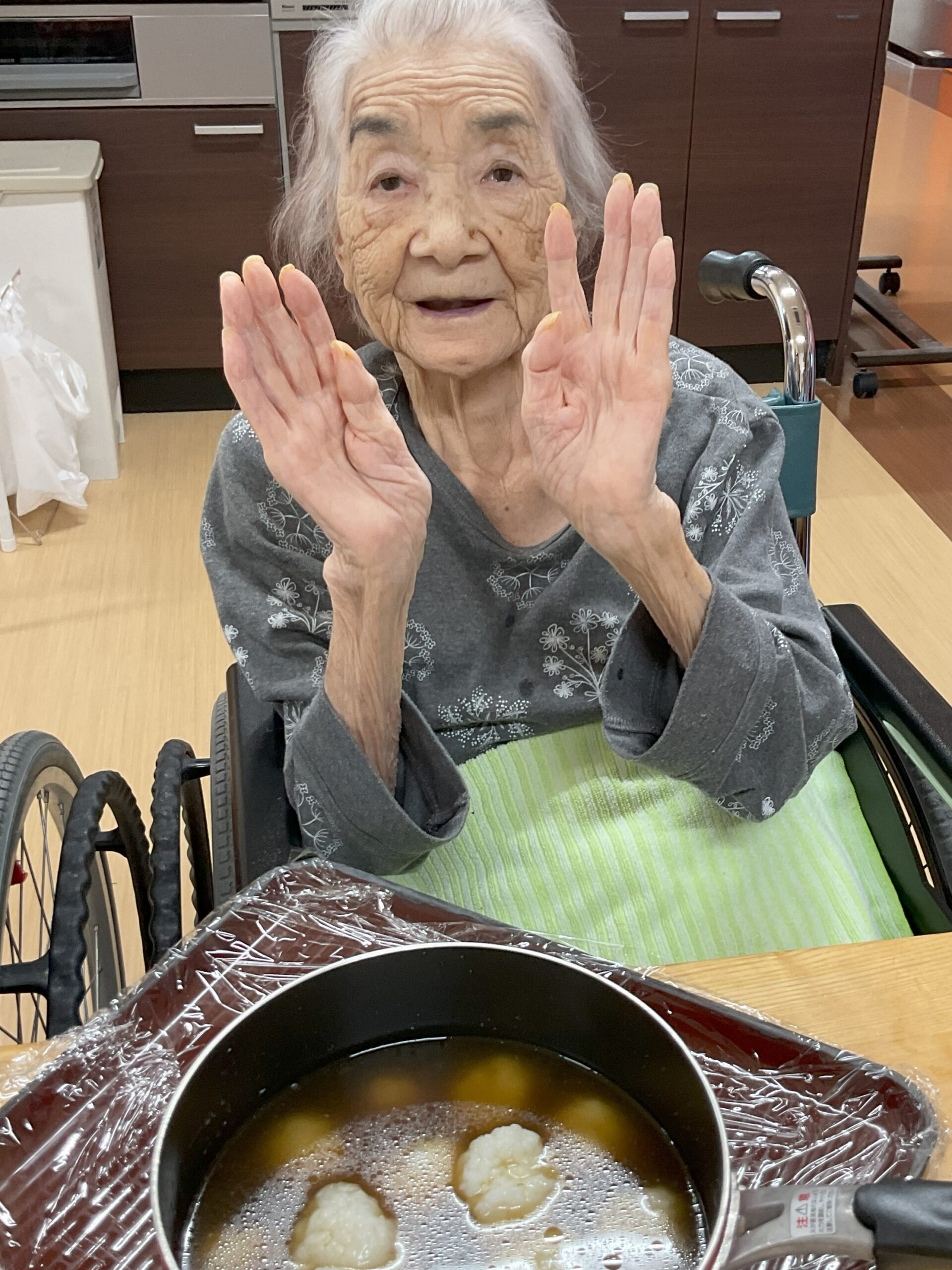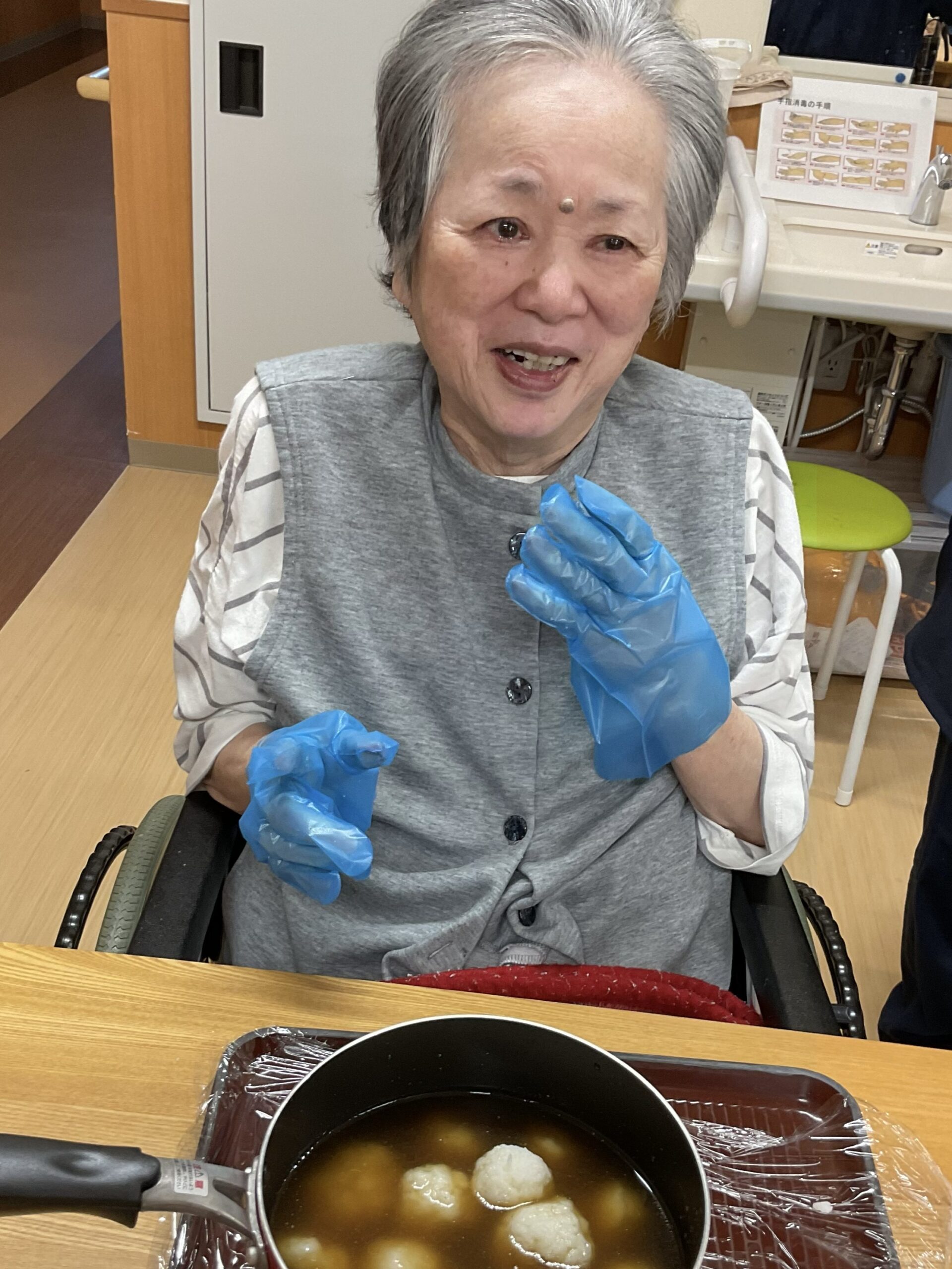 寒さに負けないよう、寺内でもだまこ鍋づくりを行いました。